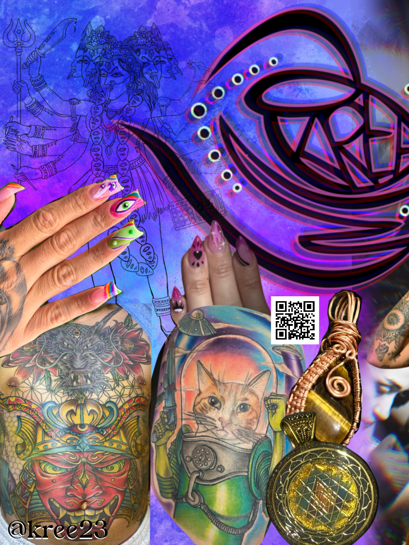 Well seasoned in lyricism and the arts, she can do it all. From tattooing, doing nails, painting, wire wrapping, producing music, DJing, she has been an MC since her poetry days starting at 16 when she also began tattooing. Kree23 is not just an artist, she is an experience that has lived many lives. Get to know her!